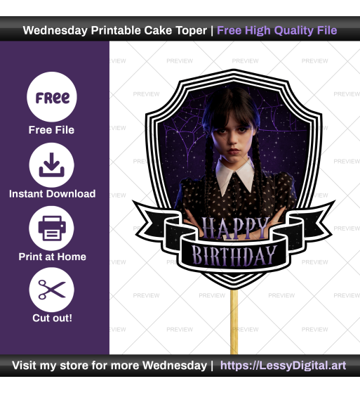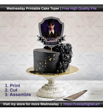 Create an incredible Wednesday Cake Topper with this High Quality File! You just need to download, print at home, cut out and assemble!